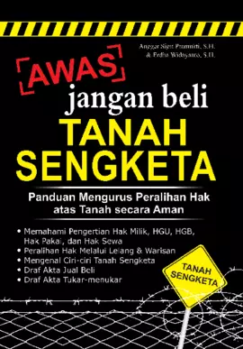 Sinopsis: Buku ini membahas pentingnya tanah dalam kehidupan manusia, baik sebagai tempat tinggal, pertanian, maupun sebagai modal investasi. Di tengah keterbatasan jumlah tanah yang tersedia dan meningkatnya kebutuhan akan tanah, persaingan untuk memperoleh tanah semakin ketat. Buku ini menjelaskan berbagai aspek hukum pertanahan, termasuk cara aman dalam membeli tanah, mengenali kasus pertanahan, serta ciri-ciri tanah yang berpotensi menyebabkan sengketa. Selain itu, buku ini juga menjelaskan peran pemerintah dalam mengatur dan mengelola sumber daya alam, khususnya tanah, sesuai dengan konstitusi dan peraturan perundang-undangan yang berlaku. Buku ini bertujuan untuk memberikan pemahaman yang jelas dan praktis tentang hak atas tanah agar penggunaan tanah dapat dilakukan secara adil, demokratis, dan berkelanjutan.