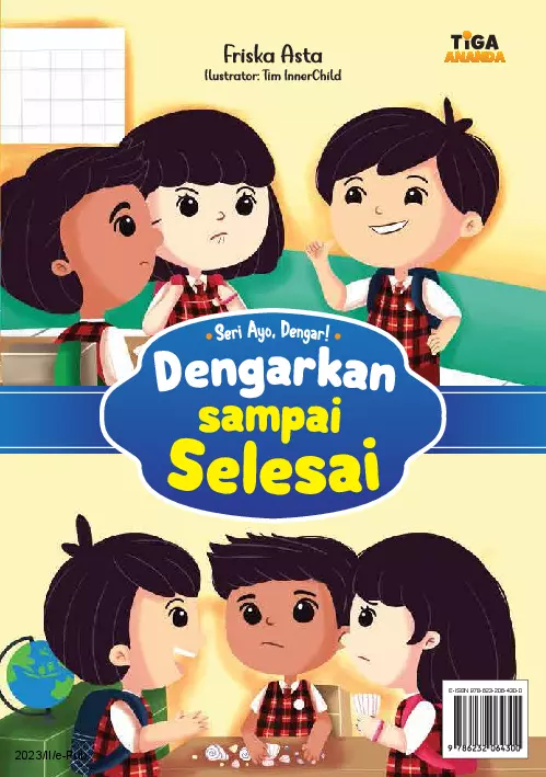 Sinopsis: Buku ini adalah bagian dari seri *Ayo, Dengar!* yang bertujuan untuk mengajarkan anak-anak pentingnya mendengar dengan baik dan penuh empati. Cerita ini menggambarkan kehidupan sehari-hari anak-anak yang berlangsung di kelas, di mana seorang ibu guru, Ibu Lili, memberikan kesempatan kepada anak-anak untuk menceritakan pengalaman liburan mereka. Dalam cerita ini, terdapat beberapa anak yang terlibat dalam situasi percakapan, di antaranya Surya, Made, dan Nadia. Surya sering kali menyela ucapan Made, yang membuat Made kesulitan melanjutkan ceritanya. Namun, Nadia memberikan tanggapan yang bijak, yaitu bahwa menyela bukanlah perbuatan yang sopan. Ibu Lili kemudian menjelaskan bahwa dengan tidak menyela, kita bisa menghargai orang lain dan mendengarkan hingga akhir. Cerita ini tidak hanya menampilkan interaksi sosial yang relevan dengan kehidupan sehari-hari anak, tetapi juga memberikan pelajaran tentang pentingnya empati, kesabaran, dan sikap mendengarkan yang baik. Buku ini dilengkapi dengan panduan untuk orang tua dalam membaca dan memahami cerita, serta evaluasi yang berfungsi untuk menggali pemahaman anak-anak mengenai nilai-nilai yang disampaikan. Melalui cerita yang menarik dan ilustrasi yang menemani, buku ini menjadi alat efektif untuk mengasah kemampuan sosial dan emosional anak-anak.