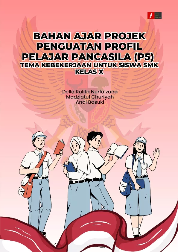 Bahan ajar Projek Penguatan Profil Pelajar Pancasila P5 Tema Kebekerjaan Untuk Siswa SMK Kelas X merupakan salah satu bukti bahwa ilmu pengetahuan akan terus berkembang seiring dengan berjalannya waktu dan kemajuan ilmu pengetahuan serta teknologi Buku ini membahas tentang 4 tema yang terbagi dalam 17 bagian yaitu 1 Profil bahan ajar dan tujuan bahan ajar 2 Tema 1 mengenali diri 3 Rubrik Penilaian Tema 1 4 Lembar Refleksi Tema 1 5 LKPD Tema 1 6 Tema 2 Bekali Diri 7 Rubrik Penilaian Tema 2 8 Lembar Refleksi Tema 2 9 LKPD Tema 2 10 Tema 3 Kemampuan Berkomunikasi Efektif 11 Rubrik PenilaianTema 3 12 Lembar Refleksi Tema 3 13 LKPD Tema 3 14 Tema 4 Eksplorasi Potensi Lokal 15 Rubrik Penilaian Tema 4 16 Lembar Refleksi Tema 4 17 LKPD Tema 4 Bahan ajar dikembangkan dan di desain secara menarik ringkas jelas dan komprehensif sesuai dengan karakteristik pebelajar era modern Bahan ajar dilengkapi dengan materi ajar yang ringkas dan berbasis studi kasus nyata real case berbasis case methode untuk memudahkan siswa memahami materi meskipun harus belajar secara mandiri Selain itu bahan ajar juga dilengkapi dengan soal Latihan berupa menjawab pertanyaan ataupun Latihan yang lebih kompleks dengan mengadopsi penerapan project based learning yaitu menghasilkan sebuah produk baik secara individu maupun secara berkelompok
