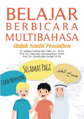 Buku ini adalah hasil penelitian pengembangan materi ajar multibahasa untuk siswa pesantren yang didesain dan dikembangkan berdasarkan analisa kebutuhan dan situasi yang ada pada tiga pesantren di kota Makassar yaitu Pesantren Moderen IMMIM Pesantren Pondok Madinah dan Pesantren Darul Arqam Muhammadiyah Gombara Sehingga diharapkan dengan hadirnya buku ini akan dapat memenuhi kebutuhan pesantren untuk mewujudkan visi dan misinya menjadikan santri yang mampu berkomunikasi aktif dalam beberapa bahasa asing sejak para santri itu telah delapan hingga sebelas bulan tinggal di dalam asrama Untuk memenuhi kebutuhan pesantren maka buku ini lebih memfokuskan pada penguasaan skill berbicara sehari hari dalam bahasa yang lazim digunakan dalam pergaulan sehari hari untuk santri pesantren kelas satu sesuai dengan visi dan misi pesantren Inti dari buku ini adalah menghafal dan mempraktekkan ungkapan dan uslub uslub kalimat yang ada dengan banyak berlatih dan mengulanginya secara individu partner maupun kelompok Susunan materi diawali berdasarkan konteks terjadinya komunikasi sehari hari dalam bahasa formal maupun non formal untuk memenuhi kebutuhan siswa berkomunikasi dengan native atau non native speaker secara langsung maupun on line Bahasa Arab nonformal yang ditampilkan di buku ini kebanyakan adalah bahasa nonformal Mesir dengan pertimbangan bahwa sebahagian besar native speaker Arab dan penduduknya memahami bahasa nonformal Mesir Sedangkan bahasa Inggris nonformal diadopsi dari dialek British dan USA Buku ini juga dilengkapi dengan cara baca spelling Indonesia tanpa menggunakan symbol phonetic guna mempermudah siswa yang kurang fasih menyebut ataupun membaca penjelasan penggunaan phrase latihan latihan refleksi materi pembelajaran dan kosakata pada masing masing topic bahasan Pada bagian akhir dari buku ini diberikan kosa kata bahasa Inggris dan Arab sebagai bahan untuk memperkaya dan mempraktekkan tarkiib dan phrase dalam berbagai contoh bentuk kalimat sederhana