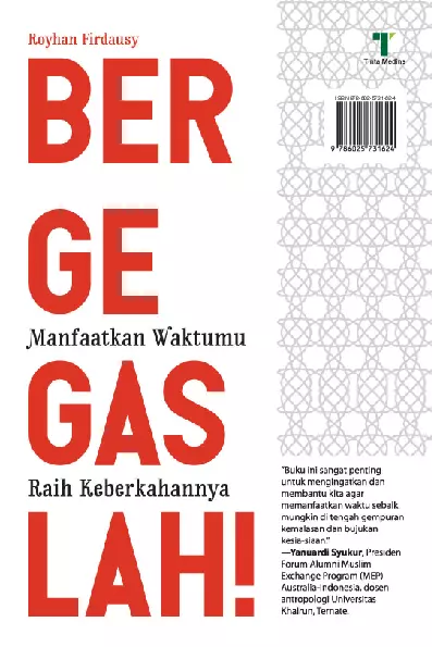 Tantangan hidup kita saat ini menuntut untuk survive dan tidak bermalas malasan Sebuah kerja keras sangat kita butuhkan karena pilihannya adalah dunia yang mengubur kita atau kita yang mengubur dunia Betapa banyak orang yang terkatung katung terjungkir balik dan terperosok jauh lebih dalam dan terbelakang karena ia menjalani hidup hanya sekadarnya atau apa adanya Potensi yang telah Allah karuniakan tidak digunakan dengan maksimal sehingga yang didapatkan hanya keletihan Suka atau tidak problem yang paling sulit untuk diatasi adalah menghilangkan kemalasan Dari dahulu sampai sekarang belum ditemukan sebuah rumus yang cocok atau solusi ampuh untuk menaklukkan hal tersebut tetapi bukan berarti tidak bisa Yang pasti kemauan dan kerja keras adalah langkah utama yang paling berpengaruh dalam hidup kita Buku ini menghimpun beberapa masalah yang menghambat kita untuk meraih kesuksesan Polemik itu ternyata tidak datang dari luar tetapi tumbuh dan berkembang dari jiwa kita sendiri Buku ini sekaligus hadir memberi solusi untuk membantu melawan dan menetralkan problem tersebut Satu kata jika ingin meraih mimpi dan kesuksesan bergegaslah