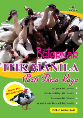 Sinopsis Buku: Buku *Beternak Itik Manila, Pasti Bisa Kaya* merupakan panduan lengkap dan praktis bagi para peternak yang ingin memulai atau meningkatkan usaha ternak itik Manila. Buku ini menyajikan informasi yang relevan dan terstruktur, mulai dari analisis pasar hingga teknik beternak yang efisien dan menguntungkan. Dalam buku ini, penulis menjelaskan secara rinci potensi bisnis beternak itik Manila, terutama dalam menghadapi kebutuhan protein hewani yang terus meningkat di Indonesia. Dilengkapi dengan data statistik terkini, buku ini memberikan gambaran mengenai konsumsi daging dan telur di Indonesia, serta membandingkan produksi itik Manila dengan unggas lainnya seperti ayam ras petelur dan ayam pedaging. Selain itu, buku ini juga menyajikan tabel-tabel yang menjelaskan perbandingan berat, jumlah telur, dan pertumbuhan populasi itik Manila di berbagai provinsi di Indonesia. Informasi ini membantu pembaca dalam memahami potensi dan keuntungan bisnis beternak itik Manila. Buku ini juga memberikan gambaran mengenai tantangan yang dihadapi oleh peternak itik Manila, seperti rendahnya konsumsi daging dan telur serta keterbatasan produksi. Namun, penulis menekankan bahwa dengan pendekatan yang tepat dan pengelolaan yang baik, beternak itik Manila bisa menjadi usaha yang menguntungkan dan berpotensi untuk menjangkau pasar yang lebih luas. Dengan informasi yang jelas, data yang akurat, serta langkah-langkah strategis, buku ini menjadi sumber inspirasi bagi siapa pun yang ingin memulai atau mengembangkan usaha ternak itik Manila.