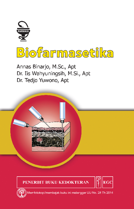Buku Biofarmasetika ini terdiri atas 8 bab yang mencakup Pendahuluan Fisiologi Tempat Absorpsi Mekanisme Transpor Konsep Rate Limiting Step dan Biopharmaceutics Classification System Bioavailabilitas Pengaturan Dosis Korelasi In Vitro In Vivo serta Uji Bioavailabilitas dan Bioekuivalensi Buku ini juga dilengkapi dengan contoh contoh perhitungan yang tersedia dalam bentuk soal soal kasus yang aplikatif untuk rancangan produksi baik untuk pemberian dosis tunggal maupun dosis ganda disertai cara penyelesaian soal Buku ini merupakan rujukan yang tepat untuk membantu proses belajar para mahasiswa yang sedang mengikuti mata kuliah Biofarmasetika serta dapat menjadi acuan bagi dosen Farmasi dalam memberikan materi untuk mata kuliah tersebut