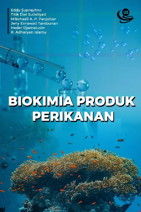 Biokimia produk perikanan merupakan kimia dari bahan bahan dan proses proses yang terjadi dalam tubuh mahluk hidup khusunya hasil perikanan sebagai upaya untuk memahami proses kehidupan dari sisi kimia perikanan Ikan dan hasil perairan memiliki komposisi kimia yang terdiri atas komponen minor dan mayor Komponen komponen di atas sangat bervariasi jumlahnya dan tergantung pada dua faktor yaitu faktor intrinsik dan ekstrinsik Tujuan pembelajaran dari ilmu biokimia perikanan adalah untuk memperkenalkan dan memberikan pemahaman tentang biokimia di bidang perikanan yaitu tentang istilah dan struktur kimia sifat fisika kimia metabolisme dan uji analisis yang berkaitan tentang karbohidrat protein lipid vitamin mineral dan segala aspek permasalahan biokimia bidang perikanan seperti kemunduran mutu ikan secara biokimia dan lain sebagainya Buku Biokimia Produk Perikanan ini dapat digunakan sebagai salah satu literatur yang dapat memperkaya khazanah pengetahuan dan memperluas sudut pandang bagi para pengajar mahasiswa akademisi atau praktisi yang membutuhkan sumber informasi mengenai biokimia perikanan