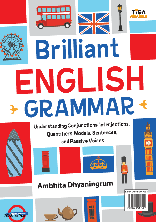 Sinopsis Buku: Buku ini merupakan panduan lengkap untuk memahami dasar-dasar tata bahasa Inggris yang penting dan sering digunakan dalam komunikasi sehari-hari. Buku ini dirancang agar mudah dipahami oleh pembaca, baik yang sedang belajar bahasa Inggris untuk pertama kalinya maupun yang ingin memperkuat pemahaman mereka. Materi yang disajikan meliputi beberapa topik penting dalam tata bahasa Inggris, seperti *conjunctions*, *interjections*, *quantifiers*, *modals*, *sentences*, dan *passive voice*. Setiap unit dilengkapi dengan penjelasan yang jelas, contoh kalimat, dan latihan soal untuk memperkuat pemahaman pembaca. Buku ini juga dilengkapi dengan kunci jawaban untuk memudahkan proses belajar mandiri. Dengan struktur yang terorganisir dan bahasa yang sederhana, buku ini menjadi alat bantu yang efektif bagi siapa pun yang ingin menguasai bahasa Inggris secara lebih baik.