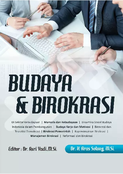 Perubahan secara global telah memacu persaingan yang semakin tajam di berbagai sektor baik di tingkat daerah maupun di tingkat nasional Untuk mendukung persaingan tersebut aspek budaya dan birokrasi dalam pelayanan publik perlu mendapat perhatian secara khusus Budaya kerja pegawai sangat bermanfaat dalam mendukung aktivitas organisasi pemerintahan birokrasi untuk membangun kembali citra positif aparat pemerintah yang sangat terpuruk Melalui budaya kerja yang kuat diharapkan citra organisasi pemerintah birokrasi di mata publik baik eksternal publik maupun internal publik semakin positif dan pada akhirnya organisasi pemerintah birokrasi mendapat dukungan dari publik sehingga mampu bersaing di tingkat nasional maupun global Budaya adalah kebiasaan turun temurun yang sudah menjadi adat istiadat setempat seperti kebiasaan mendidik kebiasaan mencari uang kebiasaan berseni kebiasaan bergaul kebiasaan menuntut ilmu kebiasaan moral serta kebiasaan aturan hukum yang dianut Buku ini terdiri 11 Bab Pada Bab 1 hingga 4 dipaparkan mengenai pendahuluan di sekitar kebudayaan manusia dan kebudayaan dan dinamika sosial budaya indonesia dalam pembangunan Pada Bab 5 hingga 8 dipaparkan mengenai budaya kerja dan motivasi birokrasi dan teoretisi demokrasi birokrasi pemerintah dan kepemimpinan birokrasi