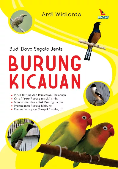 Ada berbagai macam burung kicauan seperti murai batu lovebird cucak hijau kacer pleci anis merah kenari dan lain sebagainya Namun burung yang bagus adalah burung yang mempunyai suara isian yang komplet Tentu saja hal ini tidak terjadi dengan sendirinya tetapi memerlukan pemasteran dan perawatan yang baik Buku ini mengupas tuntas berbagai macam jenis burung kicauan dilengkapi karakteristiknya pakan yang cocok serta penanganan jika terjadi masalah pada burung tersebut Selain itu buku ini juga menyajikan cara pemasteran mencari setelan untuk lomba penanganan burung mabung hingga perawatannya agar prospek untuk lomba Sehingga buku ini akan banyak membantu Anda dalam memilih jenis burung yang cocok menjadikannya berkualitas dan menjaga kualitas tersebut agar pantas bersaing jalam ajang perlombaan Buku wajib master burung