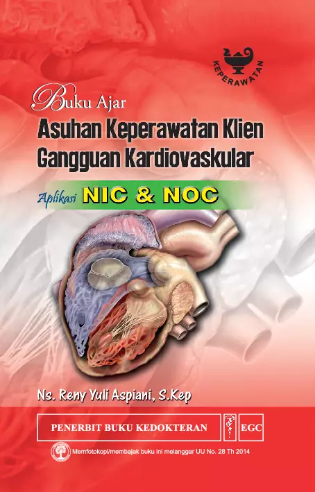 Buku Ajar Asuhan Keperawatan Klien Gangguan Kardiovaskular Aplikasi NIC NOC ditulis untuk memberikan kemampuan kepada mahasiswa dalam melakukan perawatan kepada pasien yang mengalami gangguan kardiovaskular Dengan memahami isi buku ini diharapkan mahasiswa mampu menjelaskan berbagai gangguan kardiovaskular yang dapat dialami individu Selain itu juga diharapkan dapat mengaplikasikan berbagai intervensi dengan aplikasi NIC NOC