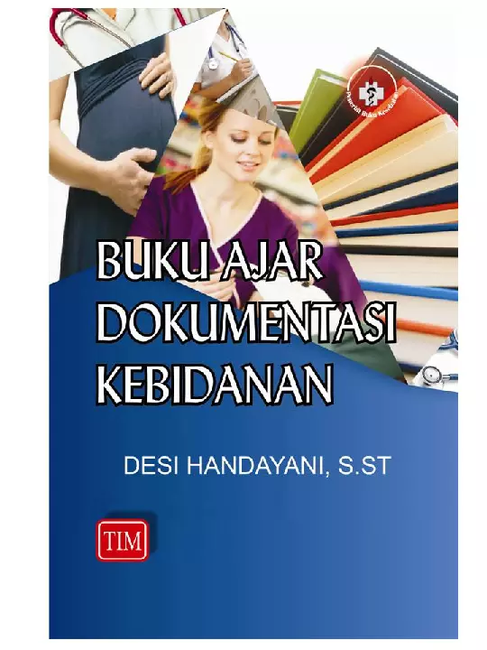 Sinopsis Buku Ajar Dokumentasi Kebidanan Buku ini merupakan panduan lengkap dan praktis dalam memahami serta menerapkan konsep, teknik, dan metode pendokumentasian dalam bidang kebidanan. Buku ini ditulis oleh Desi Handayani, S.ST, yang berpengalaman dalam bidang kebidanan dan pendidikan kesehatan. Buku ini dirancang untuk memenuhi kebutuhan para tenaga kesehatan, mahasiswa, dan profesi kebidanan dalam memperoleh pengetahuan dan keterampilan dalam mengelola dan mencatat data klinis secara sistematis, akurat, dan terdokumentasi. Dalam buku ini, dibahas secara mendalam tentang konsep dokumentasi, termasuk tujuan, fungsi, prinsip, aspek legal, manfaat, serta berbagai aspek penting seperti administrasi, ekonomi, penelitian, pendidikan, hukum, dan manajemen. Selanjutnya, buku ini juga menjelaskan berbagai teknik pendokumentasian, model-model dokumentasi seperti POR, SOR, CBE, Kardeks, serta komputerisasi dalam pendokumentasian. Terdapat pula metode pendokumentasian modern seperti SOAPIER, SOAPIE, dan SOAPIED yang sangat berguna dalam asuhan kebidanan pada kehamilan, persalinan, bayi baru lahir, dan ibu nifas. Selain itu, buku ini juga menjelaskan sistem pengumpulan data rekam medik di rumah sakit, puskesmas, dan BPS, serta sistem dokumentasi pelayanan di unit rawat jalan dan rawat inap. Buku ini juga mencakup rencana format pendokumentasian manajemen kebidanan yang terstruktur dan terstandar, sehingga memudahkan proses pengambilan keputusan, penelitian, dan pengelolaan data klinis secara efektif dan efisien. Buku ini sangat relevan untuk digunakan sebagai sumber belajar, referensi kerja, serta alat bantu dalam melatih keterampilan pendokumentasian yang profesional dan berbasis bukti dalam bidang kebidanan.