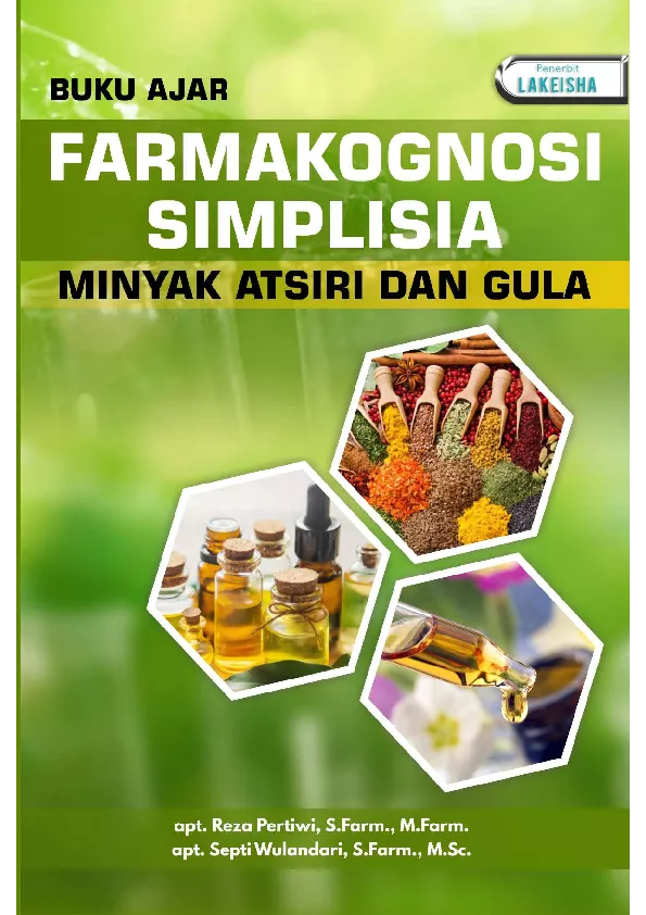 Buku pembelajaran ini membahas tentang pengantar farmakognosi proses pembuatan dan faktor yang mempengaruhi simplisia standarisasi cara uji dan parameter kualitas simplisia minyak atsiri dan aromaterapi