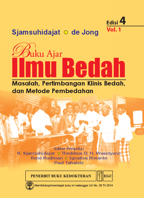 Buku Ajar Ilmu Bedah Sjamsuhidajat de Jong sudah sampai pada edisi keempat Sejak edisi pertama Buku Ajar Ilmu Bedah Sjamsuhidajat de Jong sudah dipergunakan oleh para pendidik sebagai referensi dasar untuk ilmu bedah bagi para mahasiswa kedokteran atau pun dokter muda di seluruh Indonesia Ilmu dan teknologi dalam bidang bedah terus berkembang Oleh sebab itu buku edisi keempat ini mengalami banyak pembaruan Pokok bahasan buku ini sesuai untuk mahasiswa yang mulai berkenalan dengan ilmu bedah tetapi juga tetap mencerminkan kemajuan ilmu dan teknologi di bidang bedah khususnya di Indonesia Disusun oleh lebih dari 130 ahli bedah dan ahli terkait baik dari berbagai universitas maupun pusat kesehatan di Indonesia dengan kontribusi dari hampir 50 orang kontributor baru buku ini sangat esensial bagi para mahasiswa kedokteran atau pun dokter saat memasuki dunia kedokteran khususnya dunia ilmu bedah