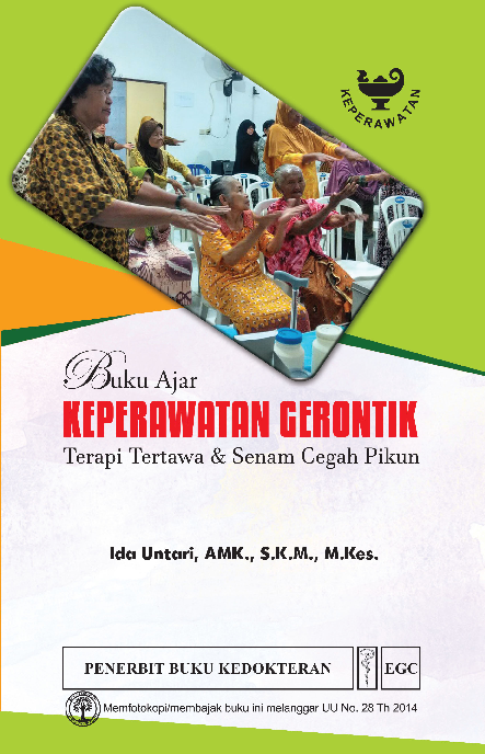 Buku Ajar Keperawatan Gerontik Terapi Tertawa dan Senam Cegah Pikun disiapkan untuk promosi kesehatan dan perawatan usia lanjut Buku ini merupakan bahan ajar keperawatan gerontik yang memberikan gambaran mengenai usia lanjut perubahan yang dialami usia lanjut teori yang mendasarinya serta upaya promosi kesehatan bagi lansia dan asuhan keperawatan bagi usia lanjut Pembahasan di dalam buku ini dilengkapi dengan model senam cegah pikun dan terapi tertawa