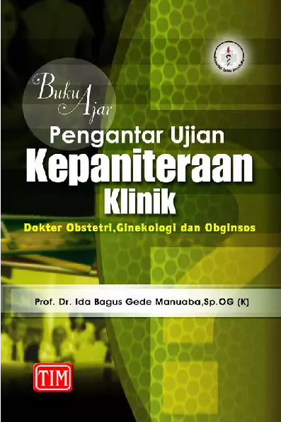 Buku Ajar Pengantar Ujian Kepaniteraan Klinik Dokter Obstetri Ginekologi dan Obginsos Materi yang dibahas dalam buku ini meliputi Ujian Kepaniteraan Klinik Dokter Obstetri Ujian Kepaniteraan Klinik Dokter Ginekologi Ujian Kepaniteraan Klinik Dokter Obginsos dan KB Ujian Kepaniteraan Klinik Campuran Contoh Ujian Tingkat Pendidikan Klinik Contoh Ujian Akhir Tingkat Kepaniteraan Klinik Dokter