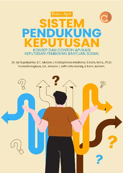 Pengambilan keputusan dapat dilakukan oleh siapa saja dan kapan saja tergantung kebutuhan baik dari yang sederhana hingga yang paling rumit sehingga dalam memberikan keputusan dapat menjadi cepat tepat atau paling rasional Buku ini dibagi menjadi 3 bagian utama yaitu bagian pertama membahas konsep keputusan dan pendukung keputusan Bagian kedua membahas model model pendukung keputusan termasuk keputusan cerdas Bagian ketiga membahas studi kasus pendukung keputusan dengan contoh pada keputusan pemberian Bantuan Sosial Bansos Setiap bab pada buku ini juga diberikan contoh contoh soal dan Jawaban Pembahasan pada Bab 1 tentang konsep dan bentuk keputusan serta pendekatan pengambilan keputusan menurut para ahli Pada Bab 1 ini juga diberikan beberapa contoh sederhana tentang keputusan yang terdiri dari beberapa alternatif penilaian pada setiap alternatif yang menjadi pertimbangan untuk menjadi pilihan Pada Bab 2 membahas konsep pendukung keputusan dan contohnya konsep Sistem Pendukung Keputusan SPK dan karakteristiknya keuntungan dalam menggunakan SPK dan contohnya serta komponen SPK Selanjutnya pada Bab 3 membahas pemodelan Keputusan berisi tahapan pembentukan keputusan yaitu identifikasi masalah perancangan pemilihan dan implementasi keputusan Contoh dan studi kasus model keputusan juga dibahas pada Bab 3 ini Sedangkan Bab 4 membahas model SPK seperti model optimasi dengan alternatif terbatas model optimasi dengan algoritma model optimasi dengan formula analitik Selanjutnya model simulasi model heurisitik dan model prediktif Beberapa contoh pada setiap model diberikan agar bisa memberikan berbagai alternatif yang cocok dan tepat untuk digunakan dalam menghasilkan keputusan Pada bagian Dua Bab 5 membahas detail pendukung keputusan dengan tabel dan pohon keputusan Struktur tabel keputusan contoh pembentukan tabel keputusan serta keuntungan dan kerugian dibahas pada bab ini Bab ini juga dibahas pohon keputusan yang berisi langkah langkah membuat pohon keputusan yang digunakan untuk melakukan penggambaran visual dalam memudahkan analisis keputusan Selanjutnya pada Bab 6 dibahas Multi Atribute Decission Making MADM yang menggunakan matriks keputusan sebagai alat bantu untuk mengevaluasi dan memilih alternatif terbaik dari banyak pilihan Berbagai metode MADM dibahas dan digunakan pada bab ini yaitu AHP SAW WP TOPSIS dan PROMETHEE Masing masing metode memiliki kelebihan dan kekurangan sehingga salah satu metode atau kombinasi metode hybrid bisa digunakan dalam penyelesaian masalah dalam memberikan keputusan yang sesuai dengan kebutuhan Selanjutnya pada Bab 7 membahas Logika Fuzzy yang merupakan pendekatan dalam pengambilan keputusan yang memungkinkan penanganan ketidakpastian dan kompleksitas dalam proses pengambilan keputusan Caranya adalah dengan menentukan variable aturan dan operasi fuzzy serta terakhir dengan melakukan defuzzifikasi Pada bagian Tiga Bab 8 buku ini membahas konsep sistem pendukung keputusan cerdas Inteligence Decision Support System IDSS SPK Cerdas dapat dibangun dengan memanfaatkan database terstruktur dengan pembelajaran mesin menggunakan teknik kecerdasan buatan sehingga dapat digunakan untuk membantu pengambilan keputusan yang kompleks dan tidak terstruktur Selanjutnya pada Bab 9 dan Bab 10 dibahas studi kasus SPK berbasis komputer dengan menggunakan metode SPK kombinasi hybrid Contoh studi kasus yang digunakan adalah dalam rangka keputusan pemberian Bantuan Sosial Bansos Kemiskinan Pada Bab 9 contoh menggunakan metode SPK hybrid yaitu AHP dengan PROMETHEE AHP dengan TOPSIS dan AHP dengan SAW Sedangkan pada Bab 10 model SPK diimplementasikan pada sistem berbasis komputer Bahasan dimulai dari analisis pengembangan sistem model waterfall analisis kebutuhan fungsional dan non fungsional selanjutnya perancangan sistem dengan use case activity diagram dan sequence diagram dan perancangan database Bansos Pada tahap implementasi SPK dimulia dengan membuat antar muka pengguna hingga implementasi SPK dengan AHP untuk menentukan bobot kriteria kemiskinan dan selanjutnya menggunakan PROMETHEE untuk menentukan ranking calon penerima Bansos