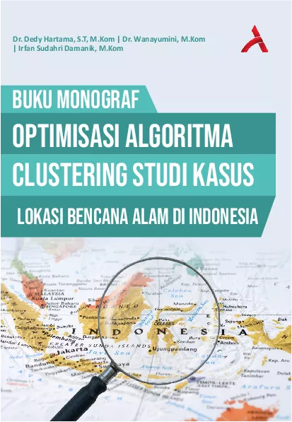 Buku monograf ini berjudul Optimisasi Algoritma Clustering Studi Kasus Lokasi Bencana Alam di Indonesia Monograf ini merupakan salah satu dari hasil penelitian kami yang disusun secara sistematis dan rapi Indonesia merupakan daerah yang memiliki potensi gempa sangat tinggi Berdasarkan data dari https gis bnpb go id lokasi bencana alam setiap tahun mengalami peningkatan yang singnifikan Untuk itu perlu dilakukan Clustering Lokasi Bancana Alam yang ada di Indonesia Algoritma yang banyak digunakan dalam Clustering adalah Algoritma K Means dan Algoritma K Medoid Algoritma Clustring merupakan algoritme untuk menentukan pengelompokan data berdasarkan jarak terdekat dari data yang bersifat numerik Dalam menentukan kluster masih dilakukan secara random Untuk mengetahui jumlah kluster yang optimum di gunakan beberatap metode diantaranya metode DBI Elbow dan Silhouette Buku monograf ini membahas secara detail mulai dari teori dan implementasi Metode Optimisasi Clustering terhadap algoritma clustering dengan tahapan pertama mencari nilai optimisasi dari jumlah kluster dengan metode DBI Elbow dan Silhouette setelah dapat nilai kluster kemudian menentukan pengelompokan lokasi bencana menggunakan aplikasi rapidminner dan orange data mining berdasarkan nilai optimisasi kluster yang sudah di dapat dari metode elbow DBI dan Silhouette menggunakan algoritma Phyton