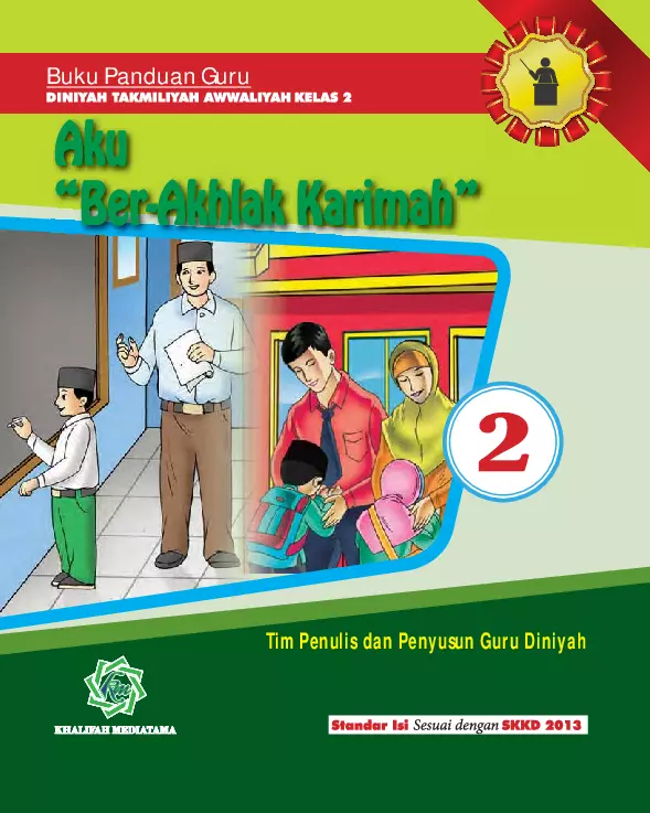 Sinopsis Buku: Buku *Aku \"Ber-Akhlak Karimah\"* ini merupakan panduan lengkap bagi guru dalam mengajar mata pelajaran Akhlak untuk siswa Kelas 2 Madrasah Diniyah Takmiliyah Awwaliyah. Buku ini dirancang sesuai dengan Standar Kompetensi dan Kompetensi Dasar Kurikulum Nasional Kementerian Agama RI tahun 2013, dengan tujuan untuk membentuk karakter siswa yang berakhlak karimah sejak usia dini. Buku ini terdiri dari dua bab utama, yaitu *Bab 1 Akhlak 1* dan *Bab 2 Akhlak 2*, yang masing-masing dibagi menjadi beberapa sub-bab. Bab 1 membahas konsep dasar akhlak Islam, termasuk pengertian akhlak secara sederhana, dalil-dalil naqli dan aqli yang mendukung pemahaman tentang akhlak, serta pentingnya berperilaku sesuai dengan ajaran Islam. Bab 2 fokus pada penerapan akhlak dalam kehidupan sehari-hari, seperti berperilaku baik, membiasakan diri dengan akhlak yang sesuai dengan ajaran agama Islam, serta mengaplikasikan doa dan kalimat thoyyibah dalam berbagai aktivitas. Selain itu, buku ini dilengkapi dengan rangkuman setiap bab, evaluasi, dan kunci jawaban untuk memudahkan guru dalam proses pengajaran dan penilaian. Buku ini juga dilengkapi dengan ilustrasi gambar yang menarik untuk menunjang pembelajaran yang lebih efektif dan menarik bagi siswa. Dengan adanya buku ini, diharapkan para guru dapat dengan mudah mengimplementasikan materi akhlak dalam pembelajaran, sehingga mampu membentuk generasi yang berakhlak karimah, berbudi luhur, dan beriman kepada Allah SWT.
