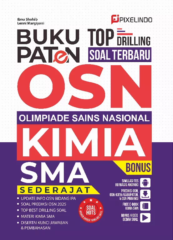 Buku berjudul Buku Paten Top Drilling Soal Terbaru OSN Kimia SMA Sederajat ini dapat menjadi buku yang tepat bagi siswa dalam menghadapi kompetisi OSN SMA sederajat bidang Kimia Buku ini berisi materi pengayaan yang dilengkapi dengan drilling soal terbaru update info OSN bidang IPA soal prediksi OSN 2025 materi Kimia SMA kunci jawaban dan pembahasan serta prediksi OSN OSN Kota Kabupaten dan OSN Provinsi Di samping materi yang tersaji di dalam buku ini siswa pun dapat memanfaatkan bonus yang disertakan dalam pembelian yaitu aplikasi simulasi tes berbasis Android e book Kimia SMA hingga video bedah soal