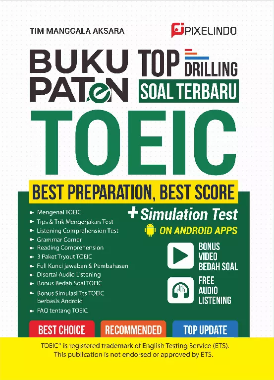 TOEIC Test of English for International Communication adalah tes standar yang dirancang untuk mengukur kemampuan berbahasa Inggris dalam konteks profesional dan bisnis internasional Tes ini digunakan oleh perusahaan dan organisasi di seluruh dunia untuk menilai kemampuan karyawan atau calon karyawan dalam berkomunikasi dalam bahasa Inggris di lingkungan kerja Hasil tes ini membantu individu meningkatkan peluang karier dan membuka pintu untuk berbagai kesempatan internasional Buku ini dirancang untuk membantu Anda mempersiapkan diri dengan optimal untuk menghadapi Test of English for International Communication TOEIC TOEIC adalah tes yang sangat penting bagi mereka yang ingin meningkatkan kemampuan bahasa Inggris mereka dalam konteks profesional dan akademis Di era globalisasi ini kemampuan berkomunikasi dalam bahasa Inggris menjadi salah satu kunci utama kesuksesan di berbagai bidang mulai dari bisnis hingga pendidikan Buku ini menawarkan materi yang komprehensif dan strategi strategi efektif untuk mengatasi setiap bagian dari tes TOEIC Setiap bab dirancang dengan hati hati untuk memastikan bahwa pembaca dapat memahami dan menguasai materi dengan baik