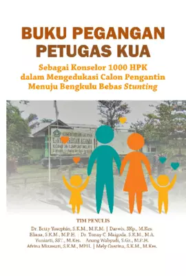 Sinopsis Buku: Buku ini merupakan panduan lengkap dan praktis bagi petugas KUA dalam melakukan edukasi gizi dan kesehatan kepada calon pengantin (catin) sebagai upaya mencegah stunting di Kabupaten Bengkulu. Buku ini disusun dengan tujuan utama untuk meningkatkan pengetahuan dan kesadaran calon pengantin tentang pentingnya gizi seimbang selama kehamilan, masa menyusui, serta pemberian makanan pendamping asi (MP-ASI) yang tepat. Dalam buku ini terdapat beberapa bab yang membahas secara rinci tentang gizi ibu hamil, gizi ibu menyusui, inisiasi menyusui dini (IMD), asi eksklusif, serta pemberian MP-ASI yang baik dan benar. Selain itu, buku ini juga menjelaskan pengertian stunting, gejala-gejala stunting pada anak, dan dampak buruk yang dapat ditimbulkan oleh stunting. Penjelasan tersebut bertujuan untuk membantu petugas KUA dalam memberikan informasi yang akurat dan bermanfaat kepada calon pengantin, sehingga mereka dapat mempersiapkan diri secara lebih baik dalam menjaga kesehatan dan gizi diri sendiri maupun bayi yang akan lahir. Buku ini juga dilengkapi dengan informasi hukum terkait hak cipta dan penggunaan karya cipta, serta alamat penerbit dan kontak untuk informasi lebih lanjut. Dengan adanya buku ini, diharapkan terciptanya Bengkulu yang bebas stunting melalui edukasi dan kesadaran masyarakat terhadap pentingnya gizi seimbang sejak dini.