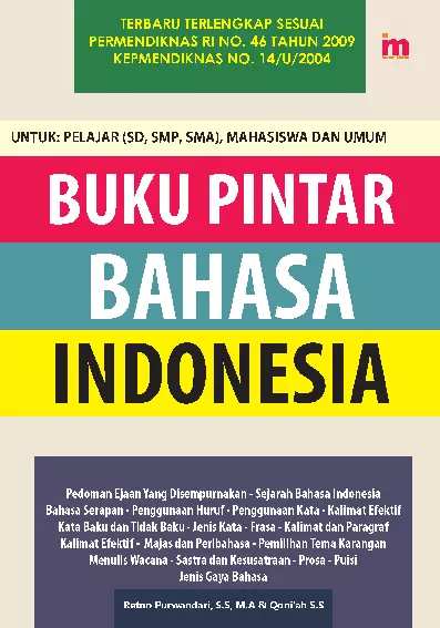 Sinopsis Buku Pintar Bahasa Indonesia Buku ini hadir sebagai panduan sederhana dan komprehensif dalam memahami bahasa Indonesia sebagai bahasa nasional Indonesia. Buku ini menjelaskan asal-usul dan kelahiran bahasa Indonesia, serta menggali makna dan fungsi bahasa dalam kehidupan sehari-hari. Penjelasan dimulai dari tingkat terkecil, yaitu dari kata, frasa, kalimat, paragraf, hingga wacana. Dalam penyajian, penulis memperhatikan tata tulis yang tepat karena bahasa Indonesia merupakan materi wajib dalam pendidikan akademik. Buku ini juga memperkenalkan sejarah bahasa Indonesia dari perspektif etnolinguis, termasuk perkembangan bahasa Austria menjadi dua rumpun besar, yaitu Austro-Asia dan Austronesia. Dalam konteks sejarah, buku ini menjelaskan bagaimana bahasa Indonesia berkembang dan berperan dalam pelestarian kekayaan budaya Indonesia yang beragam. Dengan pendekatan yang jelas dan terstruktur, buku ini bertujuan untuk memperkaya pemahaman pembaca tentang bahasa Indonesia sebagai alat komunikasi, pengungkap, dan pelestari budaya Indonesia. Buku ini sangat cocok untuk pelajar, pengajar, serta pecinta bahasa dan budaya Indonesia.