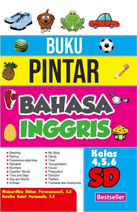 Sinopsis Buku: Buku ini merupakan panduan belajar Bahasa Inggris yang dirancang khusus untuk siswa Sekolah Dasar (SD) dan Madrasah Ibtidaiyah (MI). Buku ini menyediakan materi pembelajaran yang disusun berdasarkan Kurikulum Tingkat Satuan Pendidikan (KTSP) dan disesuaikan dengan kebutuhan siswa SD di Indonesia. Buku ini terdiri dari 13 unit pelajaran dan 2 evaluasi, dengan tema-tema yang relevan dan dekat dengan kehidupan sehari-hari siswa. Setiap unit dilengkapi dengan materi pembelajaran yang disertai contoh dan latihan soal yang mudah dipahami dan dipelajari. Materi yang disajikan meliputi berbagai topik seperti greeting, introductions, prepositions, directions, dan lainnya. Selain itu, buku ini juga dilengkapi dengan gambar-gambar yang menarik dan panduan yang memudahkan siswa dalam memahami konsep-konsep Bahasa Inggris. Buku ini bertujuan untuk memberikan pengalaman belajar Bahasa Inggris yang menyenangkan dan efektif, sehingga siswa dapat menguasai bahasa Inggris secara bertahap dan berkelanjutan. Buku ini sangat cocok untuk dipakai sebagai referensi dalam pembelajaran Bahasa Inggris di sekolah maupun di rumah. Dengan struktur yang jelas dan penyajian yang menarik, buku ini menjadi alat bantu yang efektif dalam meningkatkan kemampuan berbahasa Inggris siswa SD/MI.