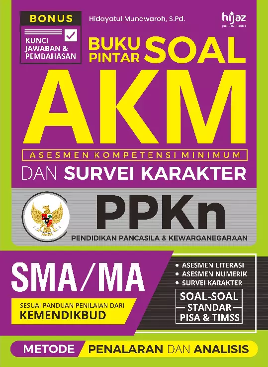 Sinopsis Buku Pintar Soal AKM (Asesmen Kompetensi Minimum) dan Survei Karakter PPKN SMA/MA: Metode, Penalaran, dan Analisis Buku ini merupakan panduan komprehensif yang dirancang untuk membantu siswa SMA kelas XI dan XII dalam mempersiapkan diri menghadapi Asesmen Kompetensi Minimum (AKM) dan survei karakter dalam mata pelajaran Pendidikan Pancasila dan Kewarganegaraan (PPKN). Buku ini menyajikan berbagai soal AKM yang berkaitan dengan literasi membaca dan numerasi, yang merupakan dua kompetensi inti dalam asesmen kemampuan minimum. Soal-soal yang disajikan memiliki karakteristik kontekstual, mengukur kemampuan pemecahan masalah, dan merangsang berpikir kritis siswa. Selain itu, buku ini juga mencakup latihan soal dan analisis untuk memperkuat pemahaman siswa terhadap berbagai bentuk soal AKM. Buku ini juga membahas metode, penalaran, dan analisis dalam pengembangan soal, serta menjelaskan pentingnya pengembangan karakter dan literasi dalam mempersiapkan peserta didik untuk menghadapi tantangan abad ke-21. Dengan materi yang terstruktur dan mudah dipahami, buku ini menjadi sumber belajar yang efektif bagi siswa dan guru dalam meningkatkan kualitas pembelajaran dan memastikan keberhasilan dalam asesmen yang dilaksanakan.