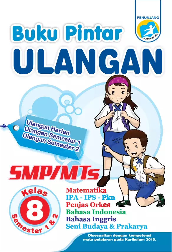 Sinopsis Buku: Buku ini merupakan kumpulan soal-soal ulangan yang dirancang untuk membantu siswa kelas VIII dalam memperkuat pemahaman terhadap materi pelajaran sesuai Kurikulum 2013. Soal-soal yang disusun mencakup berbagai mata pelajaran, antara lain Pendidikan Kewarganegaraan (PPkn), Matematika, Ilmu Pengetahuan Alam (IPA), Ilmu Pengetahuan Sosial (IPS), Bahasa Indonesia, Seni Budaya dan Pertunjukan (SBdP), Pendidikan Jasmani, Olahraga, dan Kesehatan (PJOK), serta Bahasa Inggris. Materi yang disajikan mencakup seluruh kompetensi yang terdapat dalam Kurikulum 2013 untuk kelas VIII, dengan penekanan pada pemahaman konsep, keterampilan, serta pengembangan diri. Soal-soal dalam buku ini terdiri dari ulangan harian, ujian semester satu, dan ujian semester dua, yang menjadi parameter dalam mengevaluasi kemampuan siswa dan sebagai acuan kenaikan kelas. Setiap soal disusun secara sistematis dan sesuai dengan standar pembelajaran yang berlaku, serta dikemas dalam bentuk yang menarik dan mudah dipahami. Buku ini dilengkapi dengan kunci jawaban yang memudahkan siswa, guru, dan orang tua dalam memantau proses belajar dan pembelajaran. Buku ini hadir sebagai alat bantu untuk meningkatkan kemampuan akademik siswa, sekaligus sebagai sarana untuk mengukur tingkat penguasaan materi pelajaran yang telah diberikan. Penyusun berharap buku ini dapat memberikan manfaat yang maksimal bagi para siswa, serta terbuka untuk saran dan masukan yang dapat memperbaiki kualitas buku ini di masa depan.