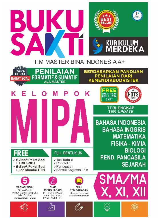 Buku ini merupakan buku pendamping terbaik dan terlengkap bagi siswa SMA MA kelas X XI XII kelompok MIPA Kumpulan materi dan soal soal dalam buku ini dapat dijadikan acuan bagi teman teman dalam belajar agar dapat lebih memahami pembelajaran yang diberikan di sekolah Mata pelajaran yang terdapat dalam buku ini adalah Bahasa Indonesia Bahasa Inggris Matematika Fisika Kimia Biologi Pendidikan Pancasila dan Sejarah Terdapat pula variasi soal ujian sekolah yakni tes tertulis portofolio penugasan dan bentuk kegiatan lain