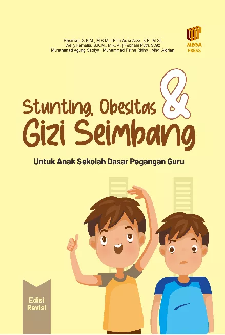 Stunting dan Obesitas adalah masalah gizi utama di Indonesia Lebih dari 23 juta anak Indonesia pada tahun 2021 mengalami stunting Sekitar 18 19 anak berusia 5 12 tahun di Indonesia memiliki berat badan berlebih overweight dan 11 anak di usia tersebut menderita obesitas Stunting dan obesitas pada anak tidak hanya berdampak saat ini tapi juga pada masa depan anak Gizi seimbang merupakan salah satu kunci untuk pencegahan masalah gizi tersebut Masalah gizi tidak bisa selesai oleh sektor kesehatan saja tapi harus kerjasama semua pihak terutama pihak sekolah Sekolah merupakan rumah kedua bagi anak anak kita sehingga pendidikan berbasis kesehatan dan partisipasi sekolah dalam penanganan masalah gizi akan sangat potensial Buku ini diharapkan bisa menjadi pegangan guru guru di Sekolah Dasar untuk memantau anak didik disekolah secara mandiri Sehingga dapat berpartisipasi dalam penanganan dan percepatan penurunan angka stunting dan obesitas di Indonesia Buku ini sudah dilakukan revisi dan penambahan beberapa bab sehingga isinya lebih lengkap dari edisi sebelumnya