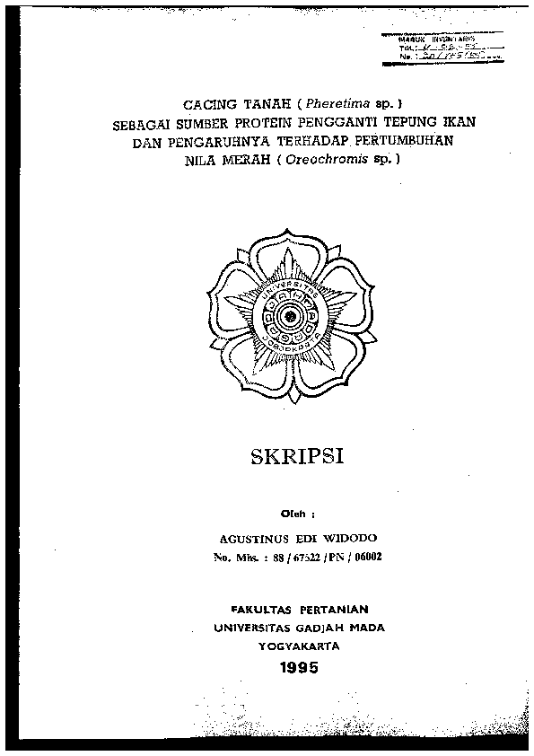 CACING TANAH (Pheretima sp.) SEBAGAI SUMBER PROTEIN PENGGANTI TEPUNG IKAN DAN PENGARUHNYA TERHADAP PERTUMBUHAN NILA MERAH (Oreochromis sp.) Agustinus Edi Widodo Fakultas Pertanian UGM Konten Lokal Konten Lokal 49197