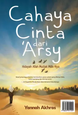 Sinopsis: Cahaya Cinta dari ‘Arsy adalah sebuah novel yang menggambarkan perjalanan hidup seorang tokoh utama yang mengalami perubahan mendalam dalam iman dan hatinya, berkat hidayah Allah yang mutlak milik-Nya. Dalam cerita ini, kita menyaksikan bagaimana Allah mampu membolak-balikkan hati manusia, dari yang semula taat menjadi murtad, lalu kembali pada jalan yang benar. Kisah ini penuh dengan rasa sakit, perjuangan, dan keharuan, sekaligus menjadi ajakan untuk introspeksi diri dan kembali pada kebenaran serta keimanan. Cerita ini juga menggambarkan sebuah perjalanan cinta yang tidak biasa, yang berawal dari pertemuan antara penulis dengan suaminya, yang menjadi penyebab terciptanya novel ini. Dengan latar belakang kisah cinta dan perjuangan, novel ini membawa pembaca pada muara istighfar dan lantunan doa, serta mengajarkan pentingnya menjaga murni keyakinan pada Sang Pencipta. Cahaya Cinta dari ‘Arsy adalah kisah yang menggugah hati, menyentuh jiwa, dan memberi harapan bagi semua yang membacanya.