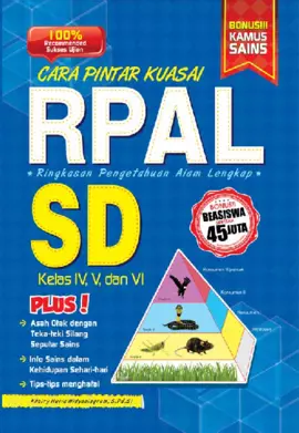 Sinopsis Buku: Buku *Cara Pintar Kuasai RPAL SD Kelas IV, V, dan VI* ini dirancang untuk membantu siswa SD kelas IV, V, dan VI dalam memahami dan menguasai materi Pelajaran Penguasaan Akar Lintas (RPAL) dengan cara yang lebih mudah, praktis, dan menyenangkan. Buku ini mengintegrasikan berbagai konsep ilmu pengetahuan alam (IPA) yang relevan dengan kurikulum, serta mengacu pada standar isi dan buku sekolah elektronik (BSE) sebagai pedoman pembelajaran di sekolah. Buku ini terdiri dari beberapa bagian utama yang mencakup topik-topik penting terkait hewan, tumbuhan, manusia, dan lingkungan. Dalam bagian pertama, siswa akan mempelajari sistem gerak manusia, termasuk struktur rangka, sendi, serta kelainan dan gangguan tulang, disertai dengan informasi sains yang menarik. Selanjutnya, dalam bagian kedua, siswa akan memahami sistem indra manusia, seperti cara kerja mata dan telinga, serta prinsip-prinsip dasar tentang pengindraan. Selain itu, buku ini juga dirancang untuk melatih kemampuan berpikir kritis, menganalisis, dan mengaplikasikan konsep IPA dalam kehidupan sehari-hari. Materi yang disajikan dalam buku ini dirancang singkat, jelas, dan mudah dipahami, sehingga memudahkan siswa dalam mempelajari dan mengingat konsep-konsep yang disampaikan. Dengan berbagai penjelasan yang disertai gambar dan contoh nyata, buku ini menjadi panduan yang efektif bagi siswa untuk meraih prestasi akademik yang baik di bidang IPA. Semoga buku ini dapat menjadi teman belajar yang bermanfaat bagi siswa SD dan membawa dampak positif dalam dunia pendidikan.