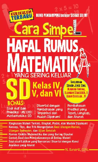 Buku ini memberikan panduan praktis dan sederhana untuk membantu siswa SD kelas IV, V, dan VI dalam menghafal rumus matematika yang sering muncul dalam ujian atau pembelajaran sehari-hari. Dengan pendekatan yang mudah dipahami dan disesuaikan dengan kemampuan anak usia tersebut, buku ini dirancang untuk mempermudah proses belajar matematika, khususnya dalam mengingat berbagai rumus yang sering digunakan, seperti rumus hitung, rumus geometri, dan lainnya. Buku ini juga dilengkapi dengan strategi belajar yang efektif dan teknik penyimpanan informasi yang dapat diterapkan oleh siswa untuk meningkatkan pemahaman dan daya ingat. Dengan cara yang menarik dan tidak membosankan, buku ini menjadi pendamping yang ideal bagi siswa dalam memperkuat kemampuan matematika mereka.