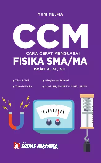 Buku Cara Cepat Menguasai Fisika merupakan buku yang wajib kamu miliki yang mudah kamu bawa ke mana saja Buku ini merupakan kumpulan ringkasan materi materi dari buku teks Mata Pelajaran Fisika di SMA MA Buku ini disusun dengan gaya bahasa formal dan komunikatif sehingga kamu akan lebih cepat dan mudah menguasai materi buku ini Buku ini disusun sesuai dengan kurikulum yang berlaku di SMA MA sehingga dapat kamu gunakan sebagai buku pendamping dari buku teks pelajaran Fisika SMA MA Selain itu buku ini juga dilengkapi dengan peta konsep dan ilustrasi yang menarik di setiap awal bab contoh contoh soal Ujian Nasional UN dan ujian masuk Perguruan Tinggi SPMB SBMPTN disertai dengan pembahasan nya