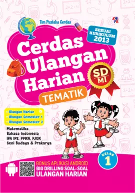 Sinopsis Buku: Buku ini merupakan buku pelajaran untuk siswa SD/MI kelas 1, yang dirancang sesuai dengan Kurikulum 2013. Buku ini berisi materi pembelajaran yang terstruktur dalam tiga tema utama, yaitu *Diri Sendiri*, *Kegemaranku*, dan *Kegiatanku*. Setiap tema terdiri dari beberapa subtema yang membahas topik-topik relevan dengan kehidupan sehari-hari anak, seperti perkenalan diri, kesehatan tubuh, kegemaran berolahraga, bernyanyi, menggambar, dan membaca, serta kegiatan pagi dan siang hari. Selain itu, buku ini juga mencakup subtema tentang pengalaman bersama teman, pengalaman di sekolah, dan pengalaman yang berkesan, yang bertujuan untuk mengembangkan kemampuan sosial dan emosional siswa. Buku ini dilengkapi dengan materi yang dirancang untuk mengembangkan kompetensi siswa dalam ranah pengetahuan, keterampilan, dan sikap secara utuh melalui pembelajaran tematik terpadu. Buku ini juga mencantumkan informasi hukum terkait perlindungan hak cipta, sebagai pengingat untuk menjaga keaslian dan keterbukaan karya intelektual. Buku ini diterbitkan oleh Pustaka Baru Press dan diterjemahkan oleh Tim Pustaka Cerdas, dengan penyunting oleh Zwisty Choirunnisa dan Arvin Mahardika. Dengan struktur yang jelas dan konten yang relevan, buku ini merupakan sumber belajar yang komprehensif dan mendukung pembelajaran yang menyenangkan dan bermakna bagi siswa SD/MI kelas 1.