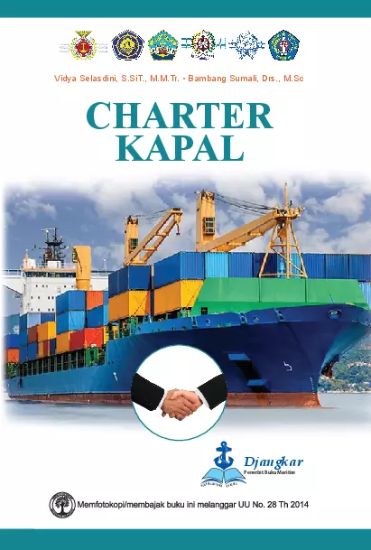 Buku Charter Kapal ini membahas tentang tata cara melakukan charter kapal dan rambu rambu hukum berkaitan dengan charter kapal Secara umum buku ini membahas tentang Transportasi dan Perdagangan Ship Chartering Charter Market Syarat Umum dan Syarat Tambahan Time Charter Voyage Charter Bareboat Charter atau Charter by Demise
