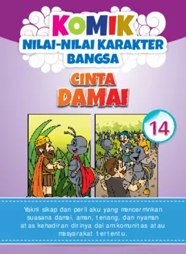 Menanamkan nilai nilai karakter bangsa yang luhur dan positif kepada anak menjadi sangat penting untuk dilakukan sedari dini Satu dari sekian banyak cara yang tepat dan termudah untuk dipahami oleh anak adalah melalui cerita bergambar yang dikemas dalam bentuk komik bilingual Salah satu dari 18 nilai nilai karakter bangsa adalah Cinta Damai yakni sikap perkataan dan tindakan yang menyebabkan orang lain merasa senang dan aman atas kehadiran dirinya Buku ini menjadi sangat layak untuk dikenalkan dan menjadi bacaan anak anak sehingga kelak dewasa akan tumbuh dengan karakter karakter positif yang akan turut serta dalam melestarikan kepribadian yang luhur