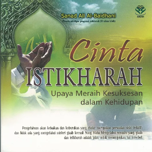 Di tengah kegamangan menghadapi berbagai permasalahn yang cukup membingungkan di era serba ketidakpastian ini setiap orang akan melakukan upaya yang menjadikan dirinya dan kehidupannya lebih bahagia tenang dan lepas dari kebimbangan dan keputusasaan Sanad Ali Al Baidhani meyakinkan setiap pribadi bahwa pada hakikatnya istikharah adalah solusi mendapatkan kesuksesan kepastian keyakinan ketenangan dan ketenteraman hati bagi siapa pun dan dalam kondisi apa pun Hal tersebut telah dibuktikan beliau selama lebih dari 20 tahun melaksanakan istikharah untuk menghadapi berbagai permasalah hidup Buku Cinta Istikharah tidak hanya membahas pengertian fungsi dan kedudukan istikharah namun lebih menjelaskan pengaruh istikharah terhadap kesehatan pikiran pengembangan dan aktualisasi diri Dengan demikian buku ini dapat menjadikan Anda pribadi yang mencintai istikharah sehingga tidak akan menyesali setiap permasalahan dan tindakan yang Anda lakukan
