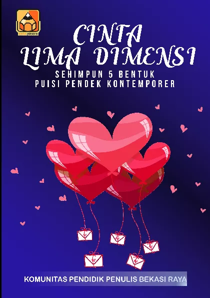 Kumpulan puisi dalam buku ini ada 5 jenis yaitu puisi Akrositik Sonian Akrosimidanian Haiku dan Senryu Makanya judul buku kumpulan puisi ini tentang Cinta Lima Dimensi Ahai Cinta adalah sesuatu yang membuat kita berdebar debar tidak bisa tidur dan makan pun tak enak Apapun itu usaha untuk meruahkan rasa dalam bentuk karya sastra berupa puisi patut kita acungi jempol Meskipun tidak secantik karya maestro Kahlil Gibran atau sepiawai Burung Merak dalam goresan syairnya Namun hal itu tidak menjadi penghalang bagi kita untuk berkarya Karya ini merupakan karya perdana guru guru yang tergabung dalam Komunitas Pendidik Penulis Bekasi Raya Buku ini lahir di tengah situasi negeri yang dilanda wabah pandemic Namun tidak menyurutkan para guru membuat dan membukukan karya sastra Melalui media sosial daan media online karya sastra ini lahir Pengalaman bersastra sejak dini penting demi membangun dan mengasah kesusastraan pada diri siswa Semoga lahirnya buku ini dapat menjadi pendobrak bagi kejumudan berpikir bahwa sastra hanya untuk guru Bahasa Indonesia