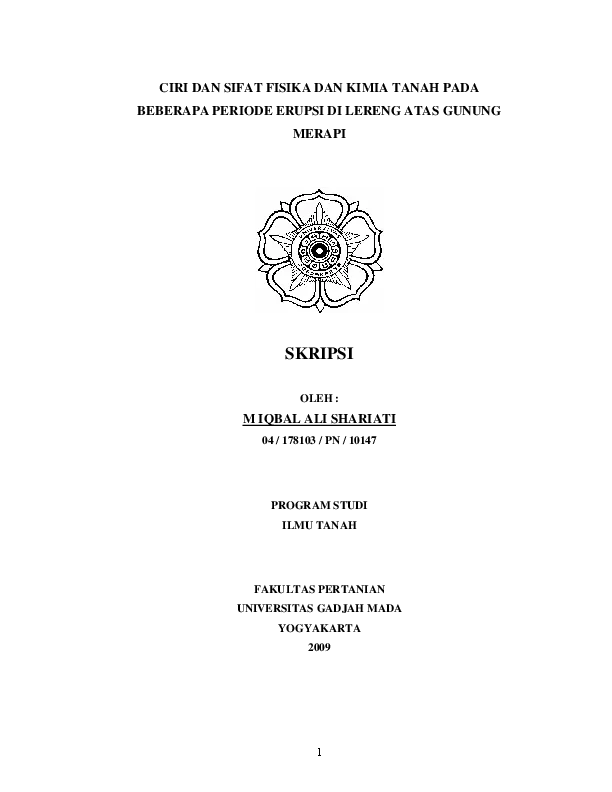 Ciri Dan Sifat Fisika Dan Kimia Tanah Padabeberapa Periode Erupsi Di Lereng Atas Gunung Merapi M Iqbal Ali Shariati Fakultas Pertanian UGM Konten Lokal Konten Lokal 31253