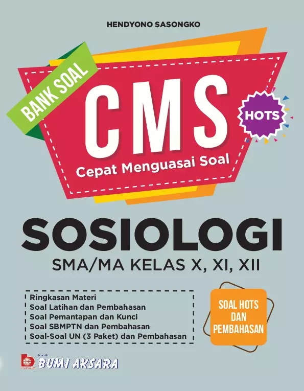 Sinopsis Buku: Buku ini merupakan kumpulan soal-soal dan pembahasan yang dirancang secara komprehensif untuk membantu siswa SMA/MA dalam mempersiapkan berbagai jenis ujian, termasuk Ujian Sekolah, Ujian Nasional (UN), Ujian Masuk Perguruan Tinggi Negeri (UTBK), dan soal HOTS (High Order Thinking Skill). Buku ini terdiri dari beberapa bab utama yang mencakup materi sosiologi, seperti: 1. Sosiologi sebagai Ilmu Pengetahuan – Mengenai konsep dasar sosiologi, objek studi, dan metode penelitian. 2. Nilai dan Norma Sosial – Membahas peran nilai dan norma dalam masyarakat serta cara nilai dan norma berpengaruh terhadap perilaku individu. 3. Sosialisasi dan Pembentukan Kepribadian – Menjelaskan proses sosialisasi dan bagaimana individu membentuk kepribadiannya dalam masyarakat. 4. Perilaku Menyimpang dan Pengendalian Sosial – Menganalisis jenis-jenis perilaku menyimpang dan mekanisme pengendalian sosial yang digunakan masyarakat. 5. Struktur, Diferensiasi, dan Mobilitas Sosial – Mengupas tentang struktur sosial, perbedaan antar kelompok, serta proses perpindahan sosial. 6. Masyarakat Multikultural – Memahami keberagaman budaya dalam masyarakat modern dan tantangan serta peluang yang muncul dari keragaman tersebut. Setiap bab dilengkapi dengan rangkuman materi, soal latihan, pembahasan soal, soal pemantapan, soal SBMPTN, serta soal HOTS yang dirancang untuk meningkatkan kemampuan berpikir kritis dan analitis siswa. Buku ini juga dilengkapi dengan paket soal Ujian Nasional yang sesuai dengan kisi-kisi terbaru, serta pembahasannya yang jelas dan terstruktur. Dengan berbagai macam soal yang disajikan, buku ini menjadi panduan yang sangat membantu bagi siswa dalam mempersiapkan diri secara optimal untuk ujian akhir dan seleksi masuk perguruan tinggi. Buku ini dirancang untuk memudahkan siswa dalam memahami konsep-konsep sosiologi, mengasah kemampuan berpikir tingkat tinggi, serta meningkatkan performa akademik secara keseluruhan.