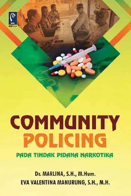 Community policing adalah strategi pemolisian yang menitikberatkan pada pengembangan hubungan dengan anggota masyarakat Kehadiran community policing sebagai alternatif gaya kepolisian yang merupakan pilihan strategi yang dilakukan anggota Polri baik sebagai konsep maupun dalam aktivitasnya Community policing menjalin kerja sama yang harmonis dengan masyarakat dalam kegiatan keamanan dan ketertiban masyarakat sehingga citra Polri makin baik Community policing penting dalam upaya penanggulangan tindak pidana yang terjadi di masyarakat Salah satu tindak pidana yang membutuhkan community policing adalah tindak pidana narkotika Maraknya tindak pidana narkotika menuntut untuk dilakukannya upaya penanggulangan dengan pendekatan pada masyarakat community policing menjadi salah satu kebijakannya Buku Community Policing pada Tindak Pidana Narkotika ini membahas mengenai tindak pidana narkotika faktor penyebab tindak pidana narkotika community policing pada tindak pidana narkotika serta hambatan dan upaya dalam pelaksanaan community policing