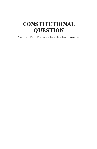 Ada beberapa bagian dalam sistematika penulisan buku ini pertama mencoba memaparkan secara selintas tentang rambu pembatas dan perluasan kewenangan Mahkamah Konstitusi Bagian kedua mencoba mengelaborasikan dan menggali sebab musabab terjadinya constitutional question dan praktik di negara lain serta kemungkainan penerapannya di Indonesia Pada bagian ketiga menelusuri sisi politik maupun hukum dan mempertanyakan serta memikirkan kembali rethinking constitutional question antara realitas politik dan implementasi hukumnya sehingga dapat mengetahui memahami secara komprehensif holistik dan integral Sebagai khotimah pada bagian keempat mencoba menggagas constitutional question di Indonesia Adapaun pada bagian terakhir ini membahas constitutional question sebagai mekanisme alternatif baru dalam mencari keadilan konstitusional yang merupakan kristalisasi kesimpulan dan saran saran yang perlu ditindaklanjuti oleh berbagai elemen baik melalui program penelitian maupun pendidikan politik dan ketatanegaraan yang lain