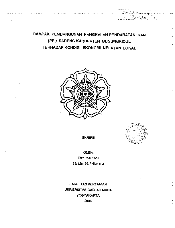 Dampak Pembangunan Pangkalan Pendaratan Ikan (PPI) Sadeng Kabupaten Gunung Kidul Terhadap Kondisi Ekonomi Nelayan Lokal Evy Mariani Fakultas Pertanian UGM Konten Lokal Konten Lokal 48495