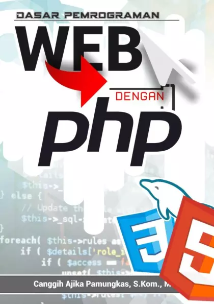 Sinopsis Buku: Buku ini membahas dasar-dasar pemrograman web menggunakan bahasa pemrograman PHP. Isi buku mencakup berbagai topik penting seperti HTML (Hypertext Markup Language), CSS (Cascading Style Sheet), pengantar web server, dan penggunaan PHP dalam pengembangan website. Selain itu, buku ini juga menjelaskan konsep dasar seperti variabel, operator, pernyataan seleksi, looping, array, dan session yang merupakan bagian integral dalam pemrograman web. Buku ini dirancang untuk memudahkan pembaca dalam memahami cara membuat dan mengembangkan aplikasi web sederhana hingga kompleks. Materi yang disajikan terstruktur secara logis dan mudah dipahami, sehingga cocok bagi pemula yang ingin mempelajari pemrograman web. Dengan penjelasan yang jelas dan contoh-contoh yang relevan, buku ini menjadi panduan yang tepat bagi mahasiswa, pelajar, atau siapa saja yang tertarik belajar pemrograman web dengan PHP.
