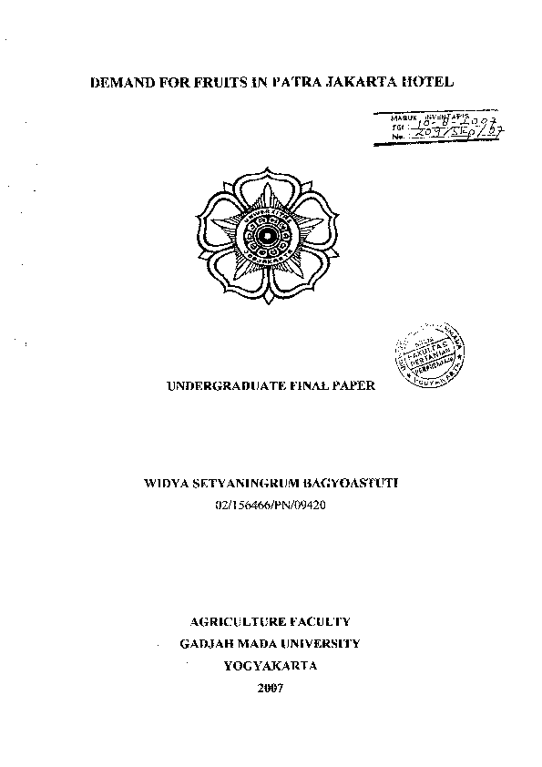 Fruits Price Fluctuation 12000 10000 3 B f WmiWWI S 3 S S XXXX K3KXX IOKXXltlKKimi K 8000 j 6000 g 4000 B7T7T7TT77777777 gg I I I I I I I I I 2000 X X X X X X X X X XXXX X X X XXXXXXXXXXXXX XsyA 0 d cPv ofe J d Time month Avocado Honeydew Pear Salak Jackfruit x Papaya Watermelon Figure 4 2 Price Fluctuations of Selected Fruits from 2004 to 2006 As stated before that there are seven selected fruits which are avocado honeydew jackfruit papaya pear salak and watermelon Every fruit is tightly selected since the hotel wants the best quality for each fruit 1 Avocado This fruit is sometimes called an avocado pear or alligator pear due to its shape and rough green skin A ripe avocado will yield to a gentle pressure when held in the hand and squeezed The fruits are allowed to ripen off the tree but they cannot be picked too early or the fruit will shrivel and fail to ripen 2 Honeydew Honeydew has a round to slightly oval shape typically 15 22 cm long It generally ranges in weight 1 8 to 3 6 kg The flesh of honeydew is pale green in color This fruit is harvested based on maturity not size Maturity can be hard to judge but is based upon ground color ranging from greenish white immature to creamy yellow mature Quality is also determined by the honeydew having a nearly spherical shape with a surface free of scars or defects Also honeydew should feel heavy for its size and have a waxy surface 25
