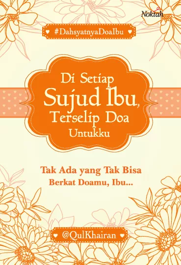 Kakiku seketika terhenti saat melihat sosok perempuan berbalut mukena putih tengah bersujud Benar saja Sosok perempuan itu adalah ibuku yaatiaa Kau wanita paling setia Terkadang kau tak peduli pada dirimu sendiri Kesehatanmu apalagi Kau tak peduli Kau selalu memikirkan putrimu Ya Itu aku alifhanuwar Sejatinya sekadar ungkapan hati yang diucapkan tepat saat para malaikat turut mengaminkan akan benar benar ajaib Tak lain tak bukan itulah kata kata dari lisan seorang ibu nuraini fa Meski diam sekalipun seorang ibu tetap akan mendoakan anak anaknya Itulah pesan yang tersirat dari kumpulan tulisan hasil lomba DahsyatnyaDoaIbu Bukan sembarang doa yang keluar dari lisan seorang ibu melainkan doa yang begitu dahsyat Dan para pemenang lomba ini telah membuktikan dahsyatnya doa doa ibu mereka