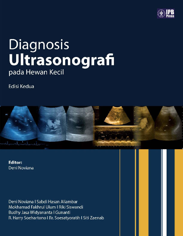 Sinopsis Buku Buku ini merupakan edisi kedua dari buku *Diagnosis Ultrasonografi pada Hewan Kecil*, yang merupakan referensi utama dalam bidang ultrasonografi untuk hewan kecil, terutama anjing dan kucing. Buku ini menyajikan koleksi sonogram kasus asli yang diperoleh oleh tim penulis dari berbagai sumber, termasuk Rumah Sakit Hewan Pendidikan (RSHP) FKH IPB, serta klinik hewan di wilayah Jakarta dan Bogor seperti My Vets, DNA Animal Clinic, dan Klinik Direktorat Polisi Satwa Baharkam Polri. Seluruh sonogram dalam buku ini dirancang untuk menjadi acuan dalam pendidikan dan praktik kedokteran hewan, khususnya dalam mata kuliah ilmu penyakit dalam, ilmu bedah, ilmu radiologi veteriner, dan instrumentasi diagnostika. Buku ini juga sangat berguna bagi dokter hewan yang berpraktik mandiri, serta untuk pembelajaran di klinik dan rumah sakit hewan. Selain itu, buku ini juga bertujuan untuk memperkaya referensi buku-buku ultrasonografi hewan kecil di Indonesia, sekaligus memberikan kontribusi dalam pengembangan ilmu pengetahuan dan teknologi di bidang kedokteran hewan. Penulis menyadari bahwa masih terdapat kekurangan dalam penyusunan buku ini, sehingga terbuka untuk saran dan kritik yang membangun untuk perbaikan pada edisi mendatang. Dengan memadukan teori, praktek, dan kasus nyata, buku ini menjadi panduan yang komprehensif dan relevan bagi para pembaca yang tertarik pada bidang ultrasonografi hewan kecil.