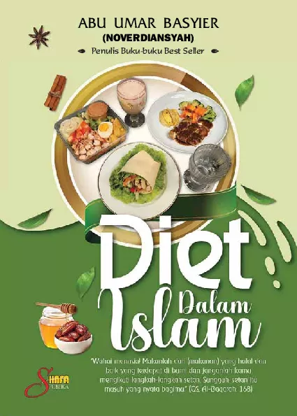 Mahal manusia Makanlah dan makanan yang halal dan balk yang terdapat di bum dan janganlah kamu mengikuti langkah langkah Man Sungguh setan itu musuh yang nyata bagimu OS hl Baqarah 168 Kata diet belakangan ini menjadi trending word di berbagai kalangan seiring dengan munculnya trend Obesitas Akhir Jaman lalu dibarengi dengan kesadaran untuk hidup lebih sehat pada sebagian kalangan kesadaran peluang bisnis pada kalangan lain atau kesempatan untuk mencungkil popularitas dari sebagian Pelaku Diet yang bisa jadi merasa berhasil melakukan diet dengan metoda metoda tertentu Sebagai agama Paripurna dan sekaligus menjadi agama kenabian akhir jaman Islam selalu hadir dengan berbagai solusi buat kehidupan manusia tidak saja dalam bentuk etika keyakinan syariat tapi juga dalam bentuk panduan panduan praktis keseharian dalam berbagai aspek kehidupan Terkadang juga berwujud formula yang dapat dikembangkan dengan telaah syariah yang tertata apik yang kerap dikenal dengan sebutan Fikih Dalam hal ini diet termasuk dalam topik yang disoroti secara serius dalam bingkai ajaran Islam Namun tidak seperti trend budaya manusia yang kerapkali timbul tenggelam atau bersifat non permanen ajaran Diet Dalam Islam bersifat lebih komprehensif permanen dan berbasis kemaslahatan dunia dan Akhirat Artinya tidak sebatas menaikturunkan berat badan misalnya atau untuk hid up lebih sehat Bagaimana lengkapnya Silakan dibaca disimak dan diresapi dari berbagai ulasannya yang tertuang dalam buku saya kali ini Selamat membaca