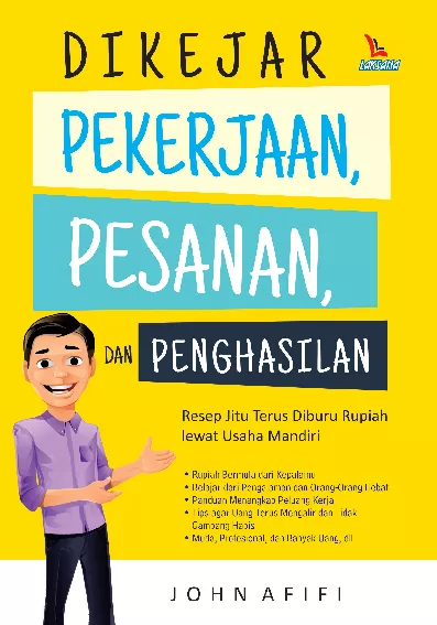 Ingin merasakan dikejar pekerjaan dalam arti positif Kamu dalam hal ini bukan dikejar deadline pekerjaan melainkan mendapat kesempatan berkarya atau pesanan sampai kamu kewalahan Tentu saja buah dari hal itu ialah kamu terus memperoleh penghasilan tiada henti Jika ingin seperti itu jangan semata mata bermodalkan kemauan Kamu harus mau bekerja cerdas mengikuti setiap langkah yang dibutuhkan selagi masih muda dan mempunyai banyak kesempatan Baca buku ini hingga tuntas Pasti kamu akan memperoleh berbagai resep jitu agar senantiasa diburu rupiah melalui berbagai usaha mandiri Kamu akan dipaksa mengenali bakat dan passion sebagai pijakan dalam memulai usaha Selanjutnya pilih salah satu usaha mandiri khas anak muda yang akan membuatmu dikejar kejar konsumen Jika menempuh prosesnya dengan benar kamu akan kelabakan untuk melayani permintaan mereka dan rupiah terus mengalir ke rekeningmu